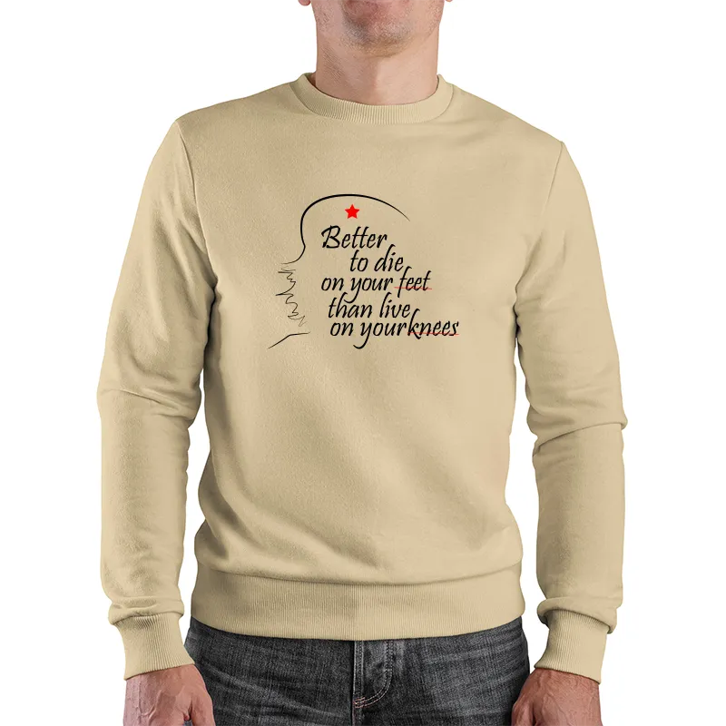 دورس مردانه اسکرین شاپ با طراحی ساده و یقه گرد خود انتخابی کاربردی برای استایل روزمره در هوای خنک است. آستین های بلند این دورس در کنار جنس نخ پنبهای نرم و تنفس پذیرش حس راحتی و آزادی حرکت را در طول روز فراهم میکند. متن “ایستاده روی پای خود مردن بهتر از زانو زده زنده ماندن است…” برگرفته از شعار معروف چریک انقلابی چگوارا است و بیانگر روحیه مقاومت و پایبندی به عقیده میباشد. طراحی مفهومی آن باعث میشود به راحتی با انواع شلوار جین، کتان یا حتی استایل نیمه رسمی ست شود. دوخت استاندارد و کیفیت بالای پارچه این دورس آن را به گزینهای مطمئن برای استفاده روزانه در پاییز و زمستان تبدیل کرده است.