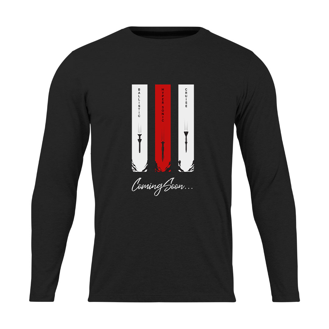 سه سایه موشک روی سینه و نوشته …Coming Soon. نمادی از سرعت، قدرت و اقتدار ایرانیها