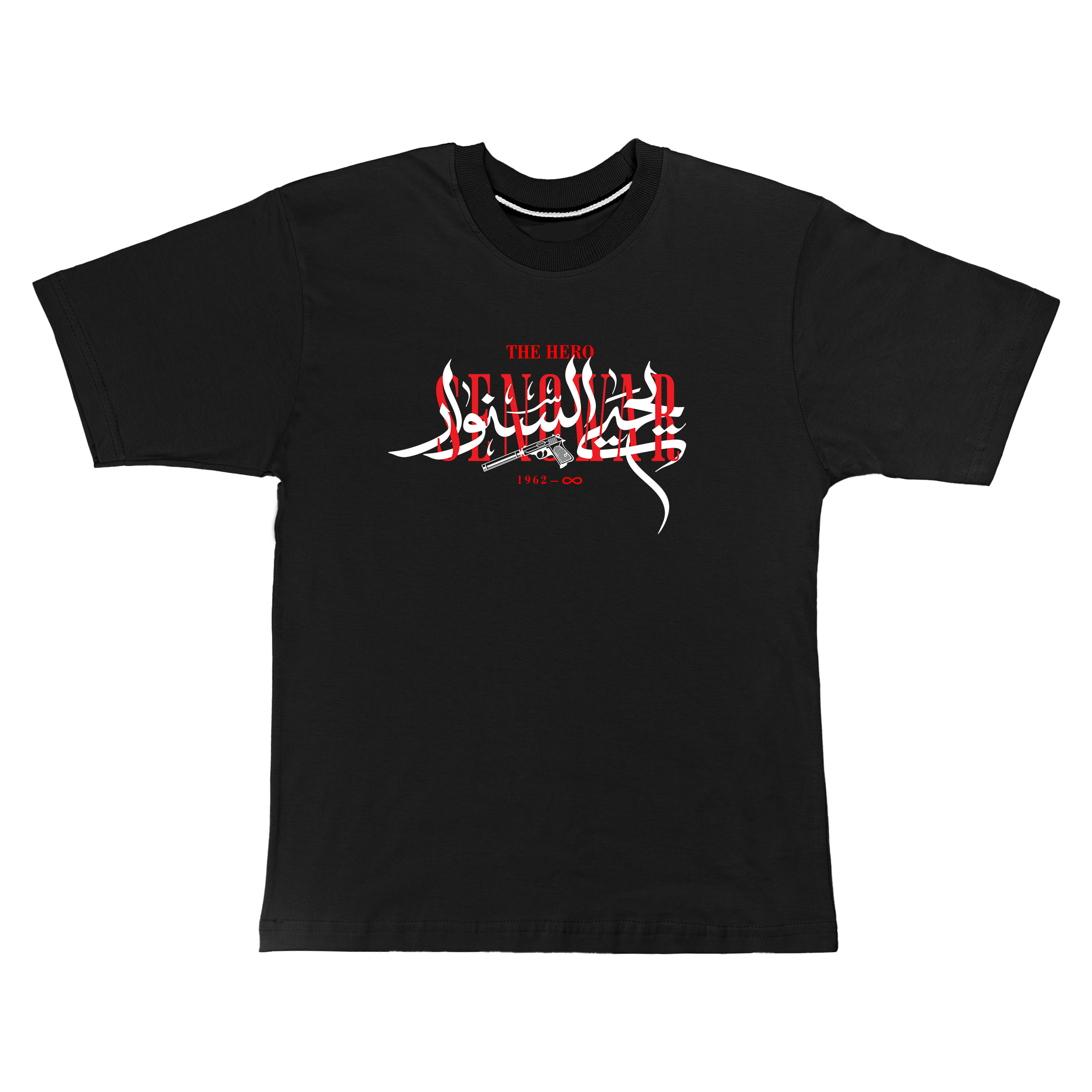 تیشرت مردانه یقه گرد اسکرین شاپ با طراحی ساده خود گزینه‌ای مناسب برای استایل های روزمره و اسپرت است. آستین های این تیشرت کمی بلندتر از حالت معمول بوده و تا نزدیکی آرنج قرار می‌گیرند. نام “یحیی سنوار” که از رهبران برجسته مقاومت فلسطین است روی سینه تیشرت قرار گرفته و نمادی از ایستادگی و مبارزه برای آزادی را به همراه دارد. جنس این تیشرت نخ پنبه بوده و همین موضوع باعث نرمی، راحتی و تنفس پذیری بالای پارچه می‌شود. تیشرت مردانه اسکرین شاپ با دوخت استاندارد و کیفیت بالای پارچه انتخابی مناسب برای ست کردن با انواع شلوار جین یا کتان خواهد بود.